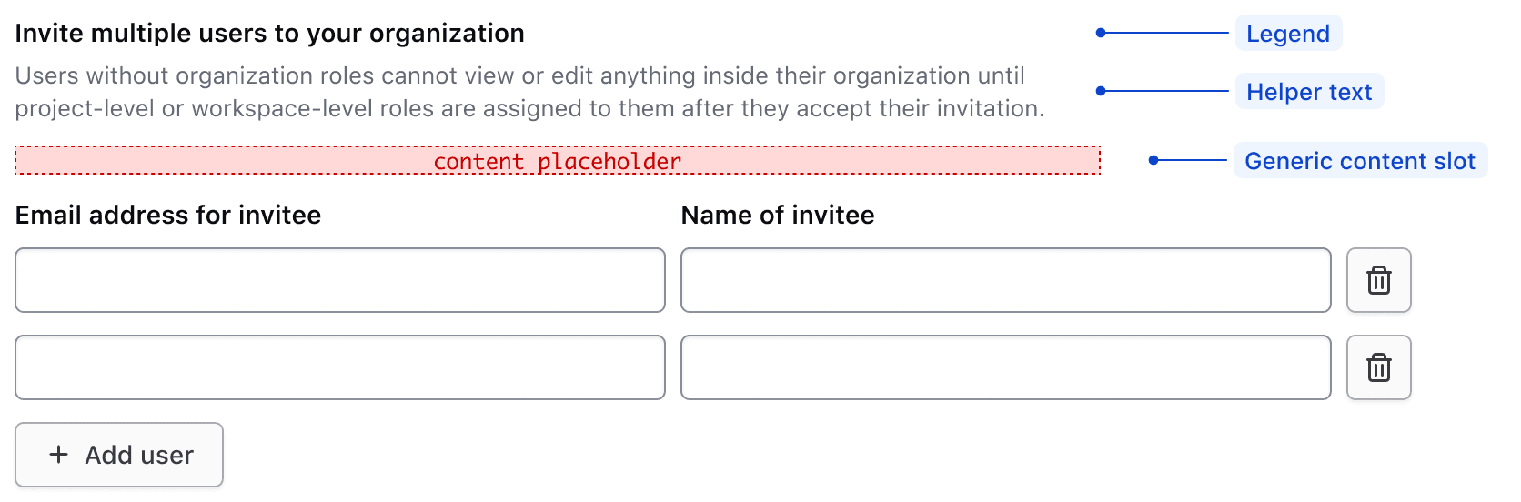 <H.Legend>Invite multiple users to your organization</H.Legend>